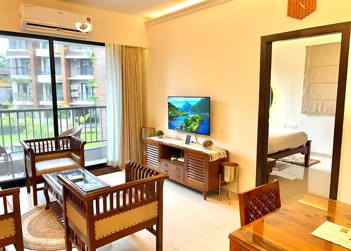 Ten apartament dysponuje miejscem do pobytu dziennego, miejscem do siedzenia i w pełni wyposażoną kuchnią oraz takimi udogodnieniami jak klimatyzacja. Aby zapewnić Ci komfort, Ultra Luxe 1Bhk Candolim - Modern Apartment, Pool, Balcony - 5 Minutes To Beach oferuje oddzielną toaletę, umywalkę i prysznic. Dostępne są również suszarka do włosów, czepki kąpielowe i ręczniki kąpielowe.